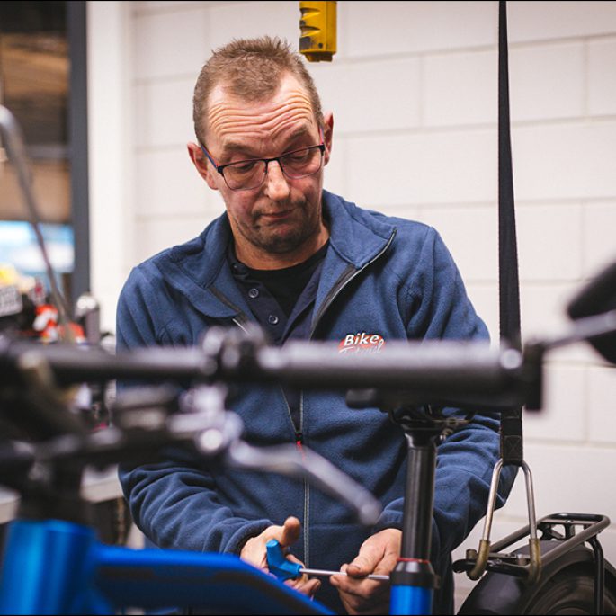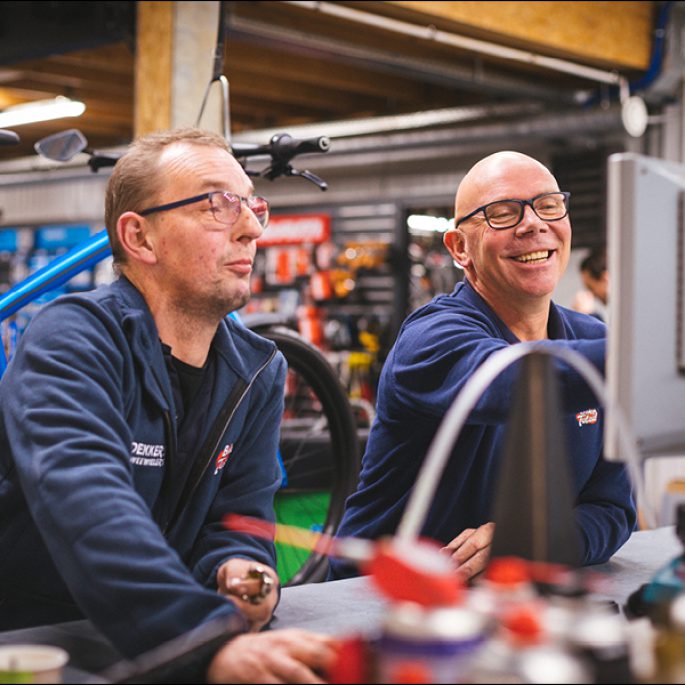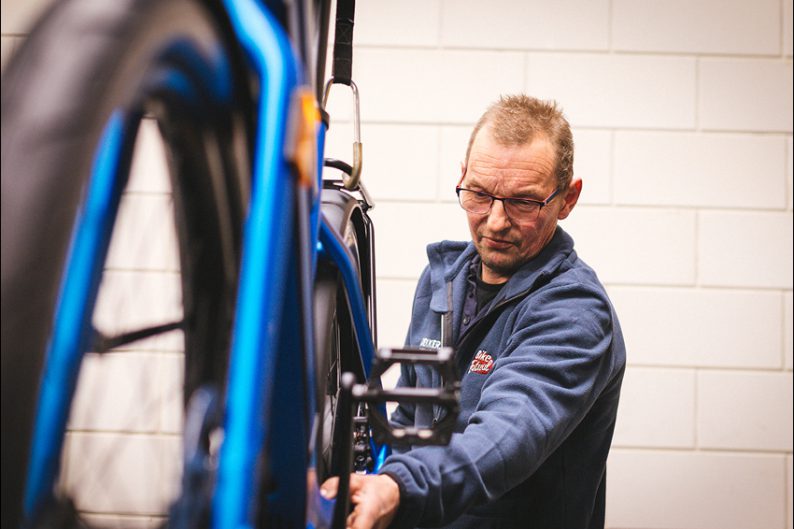 We zitten geregeld met elkaar aan tafel en sturen bij daar waar nodig. Jeroen geeft zelf ook goed aan wat hij prettig vindt of niet. Zo is hij bijvoorbeeld gestart aan de voorkant van onze werkplaats, waar veel klantcontact plaatsvindt. Al snel gaf hij te kennen dat hij daar te veel prikkels ervaart. Toen hebben we hem een andere positie in onze werkplaats gegeven, zodat hij rustig aan een fiets kan werken zonder gestoord te worden. Nu zit hij veel beter op zijn plek.”