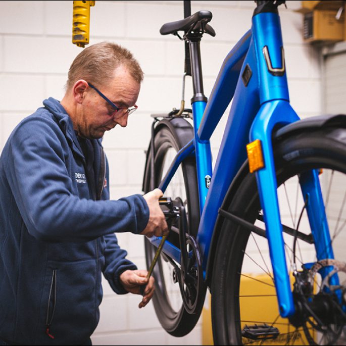 Rob Dekkers is trotse eigenaar van Dekkers Tweewielers in het Noord-Limburgse Wanssum. De fietsenzaak bestaat al ruim dertig jaar en is inmiddels een landelijke speler. “Mijn ouders zijn ooit begonnen in de garagebox achter ons huis. De tijden zijn natuurlijk veranderd. Niet alleen opereren we nu vanuit onze prachtige zaak met ruim 2.000 m2 aan fietsplezier, ook is het werk dat we doen compleet anders. Waar een fietsenmaker vroeger vooral een ‘klusser’ was die graag zwarte handen kreeg, hebben we door de grote opkomst van e-bikes tegenwoordig voornamelijk personeel met een elektrotechnische achtergrond in dienst.” Een fiets repareren via een laptop is bij Dekkers Tweewielers eerder regel dan uitzondering en ook is de branche een stuk commerciëler dan voorheen. “Beleving en klantbenadering zijn de afgelopen jaren heel belangrijk geworden. Onze medewerkers hebben veel contact met klanten om ze bij te staan in hun zoektocht naar een passende fiets.”